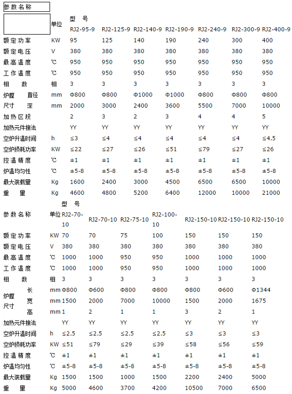 RJ2系列中溫井式電爐結(jié)構(gòu),外殼由鋼板和型鋼制成圓柱形爐體。爐蓋內(nèi)面采用弧形超輕質(zhì)節(jié)能耐火材料和勝酸鋁纖維制成。爐襯采用超輕質(zhì)0.6g/cm3節(jié)能微孔耐火保溫磚砌筑。爐襯與爐殼夾層置酸鋁纖維氈保溫,間隙填充膨脹保溫粉。電阻絲采用0Cr25Al5高電阻合金絲線成螺旋狀安裝在爐膛的擱絲磚上。爐蓋采用手動(dòng)或電動(dòng)升降。為了使工件均勻加熱,中型和大型井式電爐采用多區(qū)多段控溫,并按空氣溫升規(guī)律采用均溫布絲法合理分配功率,以保證爐膛溫度上下均勻一致。為保證操作安全,在升降機(jī)構(gòu)附近裝有限位開(kāi)關(guān),此開(kāi)關(guān)與井式電爐控制柜電源聯(lián)鎖,爐蓋關(guān)閉時(shí)接通電源。當(dāng)爐蓋開(kāi)啟時(shí)限位開(kāi)關(guān)即切斷控制電源,因此加熱元件的電源同時(shí)切斷,以保證安全操作。中溫井式電爐出廠時(shí)配套自動(dòng)控溫柜,熱電偶。