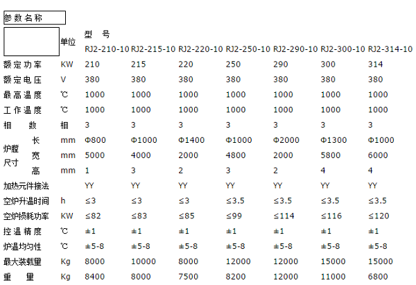 RJ2系列中溫井式電爐結(jié)構(gòu),外殼由鋼板和型鋼制成圓柱形爐體。爐蓋內(nèi)面采用弧形超輕質(zhì)節(jié)能耐火材料和勝酸鋁纖維制成。爐襯采用超輕質(zhì)0.6g/cm3節(jié)能微孔耐火保溫磚砌筑。爐襯與爐殼夾層置酸鋁纖維氈保溫,間隙填充膨脹保溫粉。電阻絲采用0Cr25Al5高電阻合金絲線成螺旋狀安裝在爐膛的擱絲磚上。爐蓋采用手動(dòng)或電動(dòng)升降。為了使工件均勻加熱,中型和大型井式電爐采用多區(qū)多段控溫,并按空氣溫升規(guī)律采用均溫布絲法合理分配功率,以保證爐膛溫度上下均勻一致。為保證操作安全,在升降機(jī)構(gòu)附近裝有限位開(kāi)關(guān),此開(kāi)關(guān)與井式電爐控制柜電源聯(lián)鎖,爐蓋關(guān)閉時(shí)接通電源。當(dāng)爐蓋開(kāi)啟時(shí)限位開(kāi)關(guān)即切斷控制電源,因此加熱元件的電源同時(shí)切斷,以保證安全操作。中溫井式電爐出廠時(shí)配套自動(dòng)控溫柜,熱電偶。