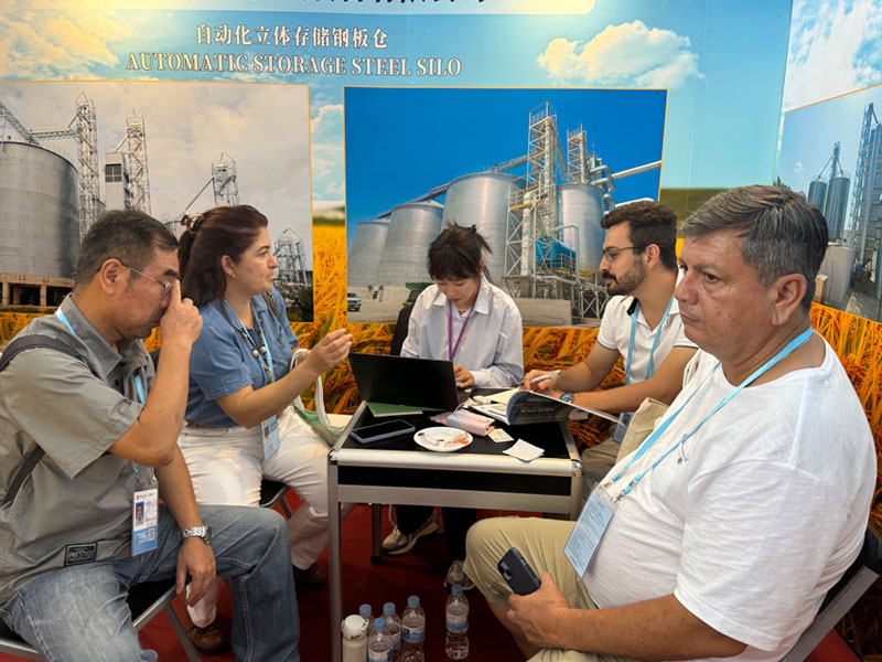 糧食烘干塔:自主研發(fā)的智能控制系統(tǒng)、節(jié)能環(huán)保技術(shù)等],解決了糧食收貨后烘干難題,吸引了大量采購商駐足體驗。