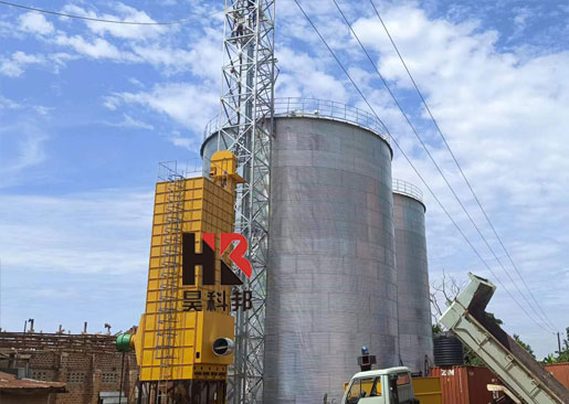 昊科邦鋼板倉生產(chǎn)廠家專業(yè)生產(chǎn)單倉容量一百噸到一萬八千噸的裝配式鋼板倉,本項目是新疆的糧食加工廠,10座300噸柱腳式鋼板糧食筒倉。