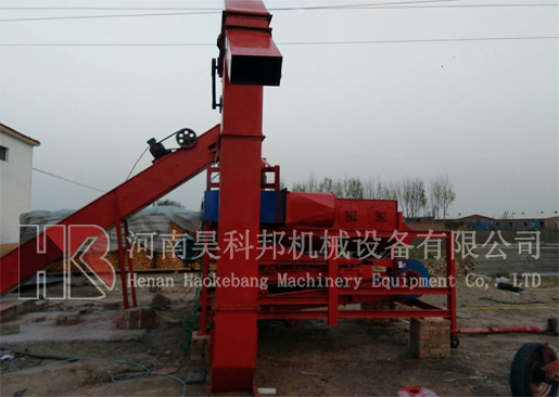 該機(jī)由機(jī)架、上料機(jī)、提升機(jī)、電動機(jī)、齒輥、進(jìn)料斗、滾筒、風(fēng)機(jī)、地輪等部分組成。